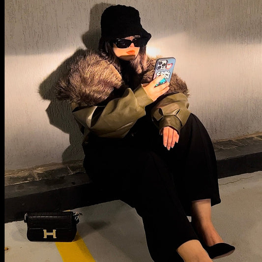 MaoMi’s double face leather jacket(Black)