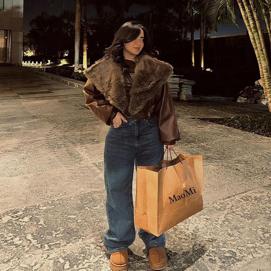 MaoMi’s double face leather jacket(Brown)
